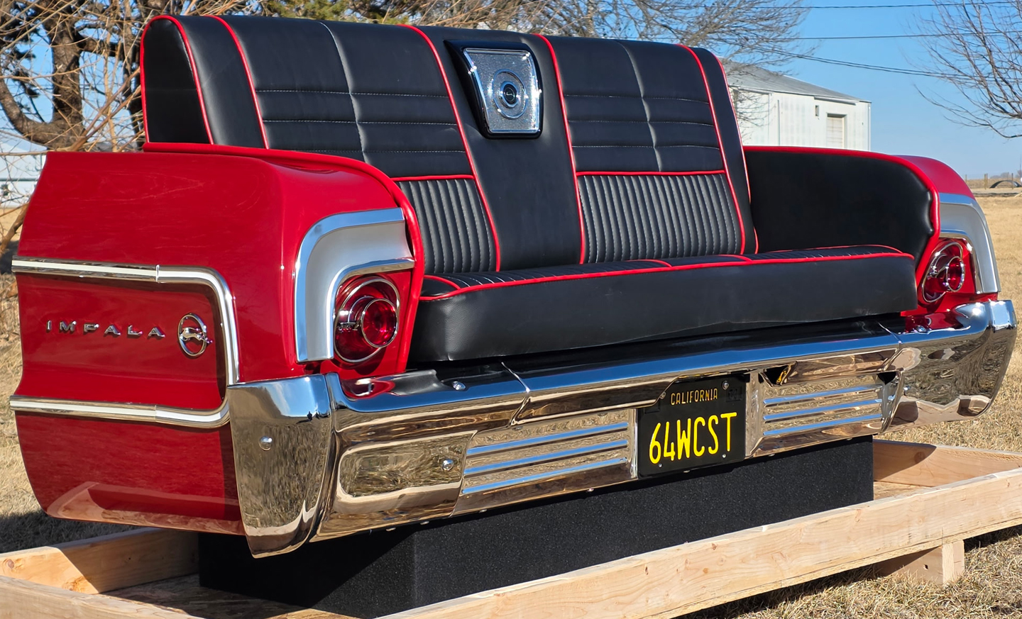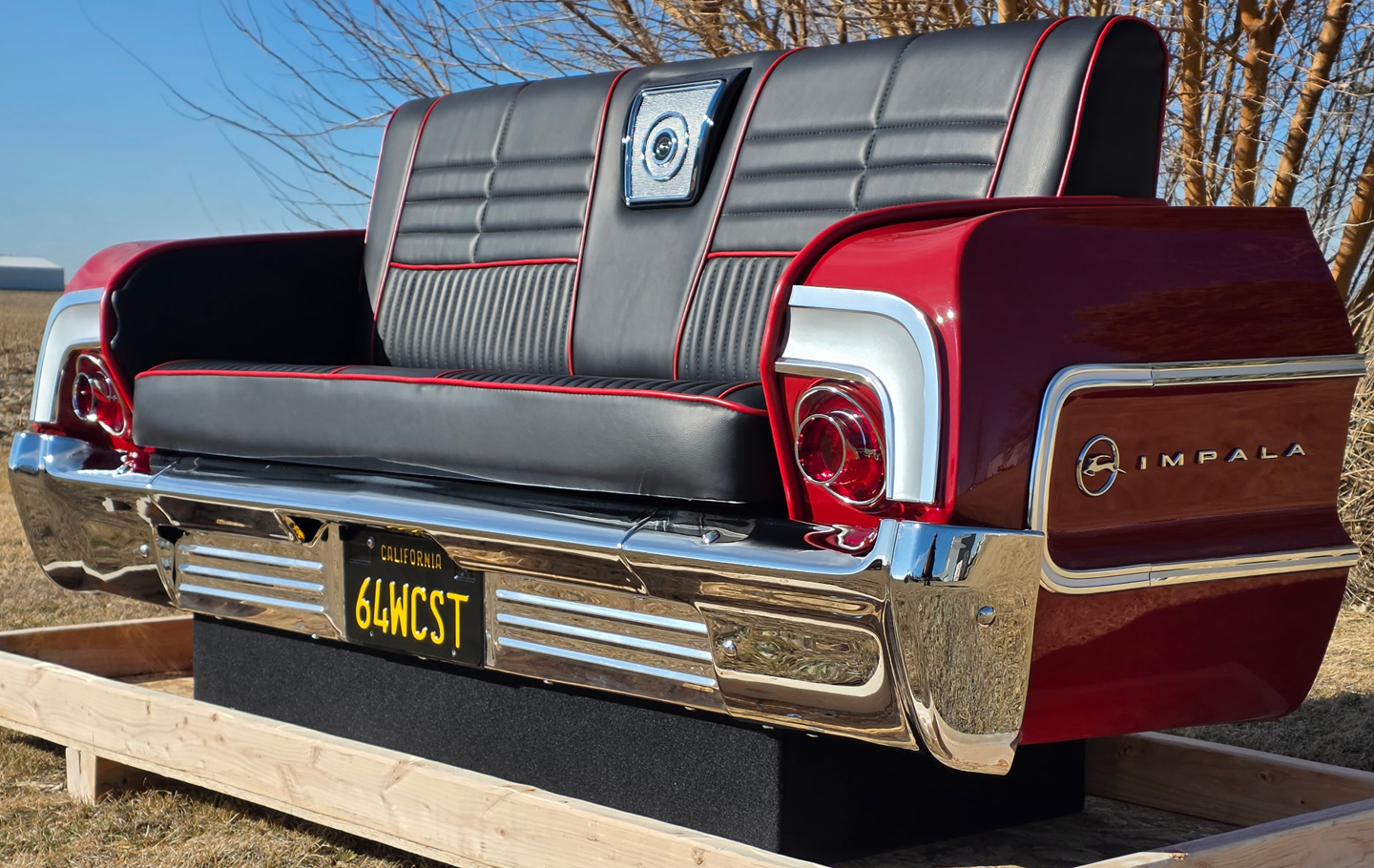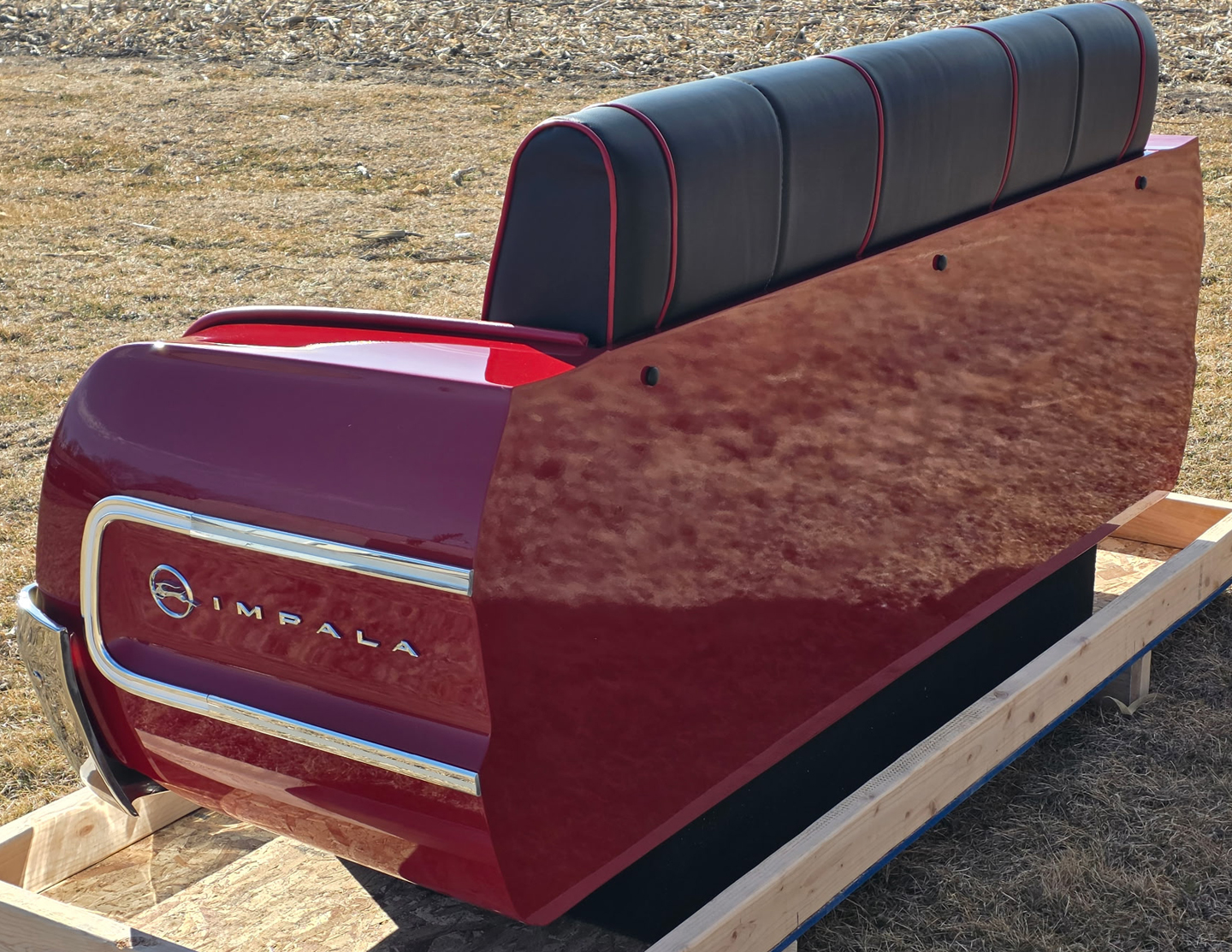 FLASH SALE: We have some rear ends primed and ready to finish. We can offer this beautiful 1957 Chevy 210 Rear End Car Couch ready to go in 8-10 weeks. This being for sold for a discounted price of only $8,810.00 USD plus shipping. Please call today to order one of these couches. This functional work-of-art is available at an amazing price to the first (4) lucky customers!Call (478) 320-2502 today. |